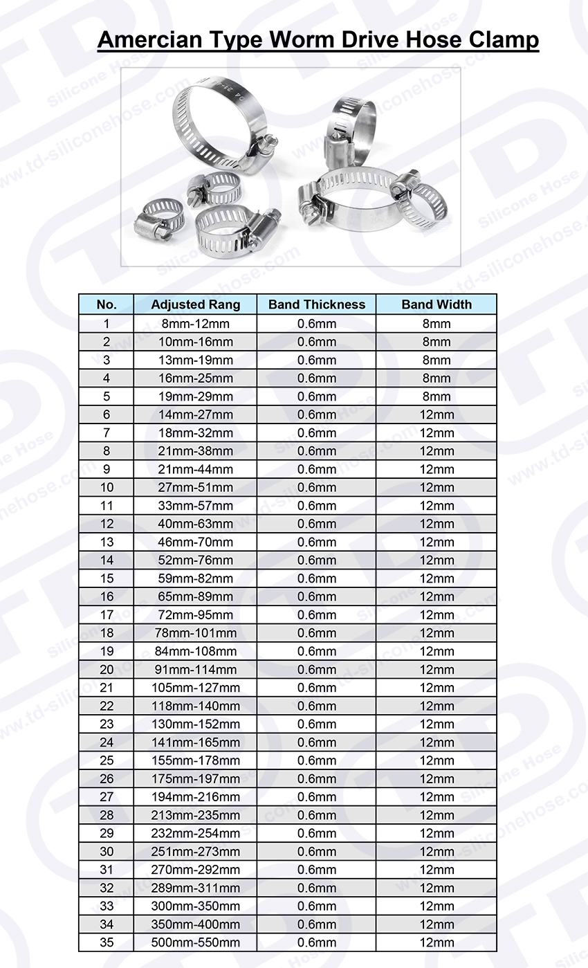 Amercian Type Worm Drive Slange Klemspesifikasjoner: